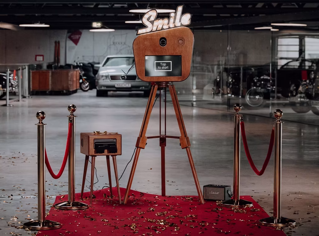 Per Touchscreen können sich eure Gäste direkt nach dem Auslösen digital mit Hüten, Brillen oder diversen Filtern versehen. Für alle, die es lieber klassisch mögen, gibt’s zusätzlich immer einen mit Accessoires gefüllten Vintage Rimowa-Koffer zur freien Verfügung!Und weil ihr keine Lust auf 08/15 habt: